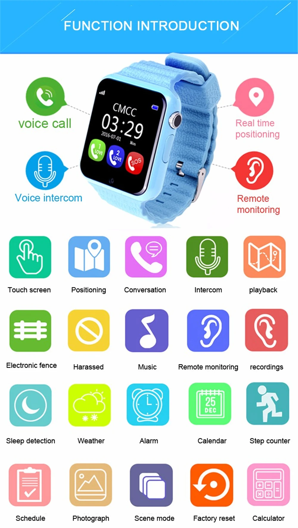 Function:Answer Call,Dial Call,Alarm Clock,Passometer,Message Reminder,24 hour instruction,Call Reminder