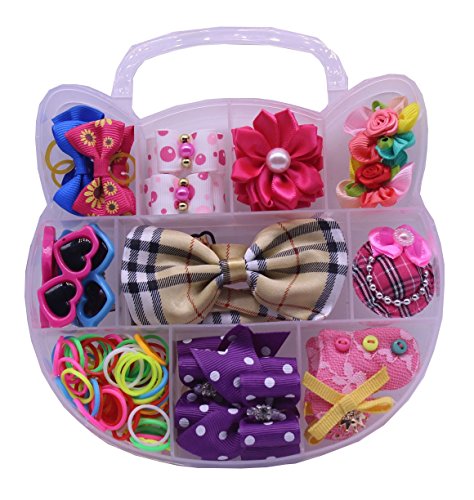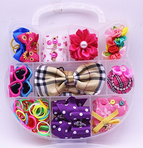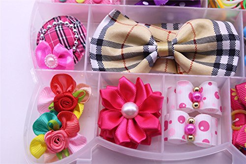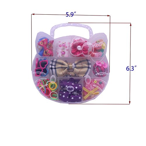 -. Title : Yagopet Dog Hair Bows With Rubber Bands Set PP Box Packing Cute Cat Design Pet Topknot Dog bows Mix Rhinestone Pearls Bows Pet Dog Grooming Bows Dog Bows Hair Accessories