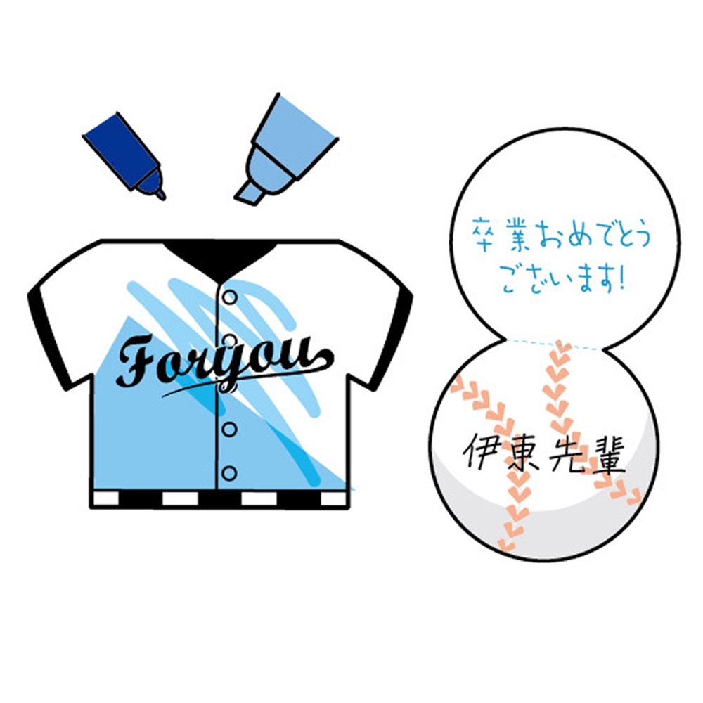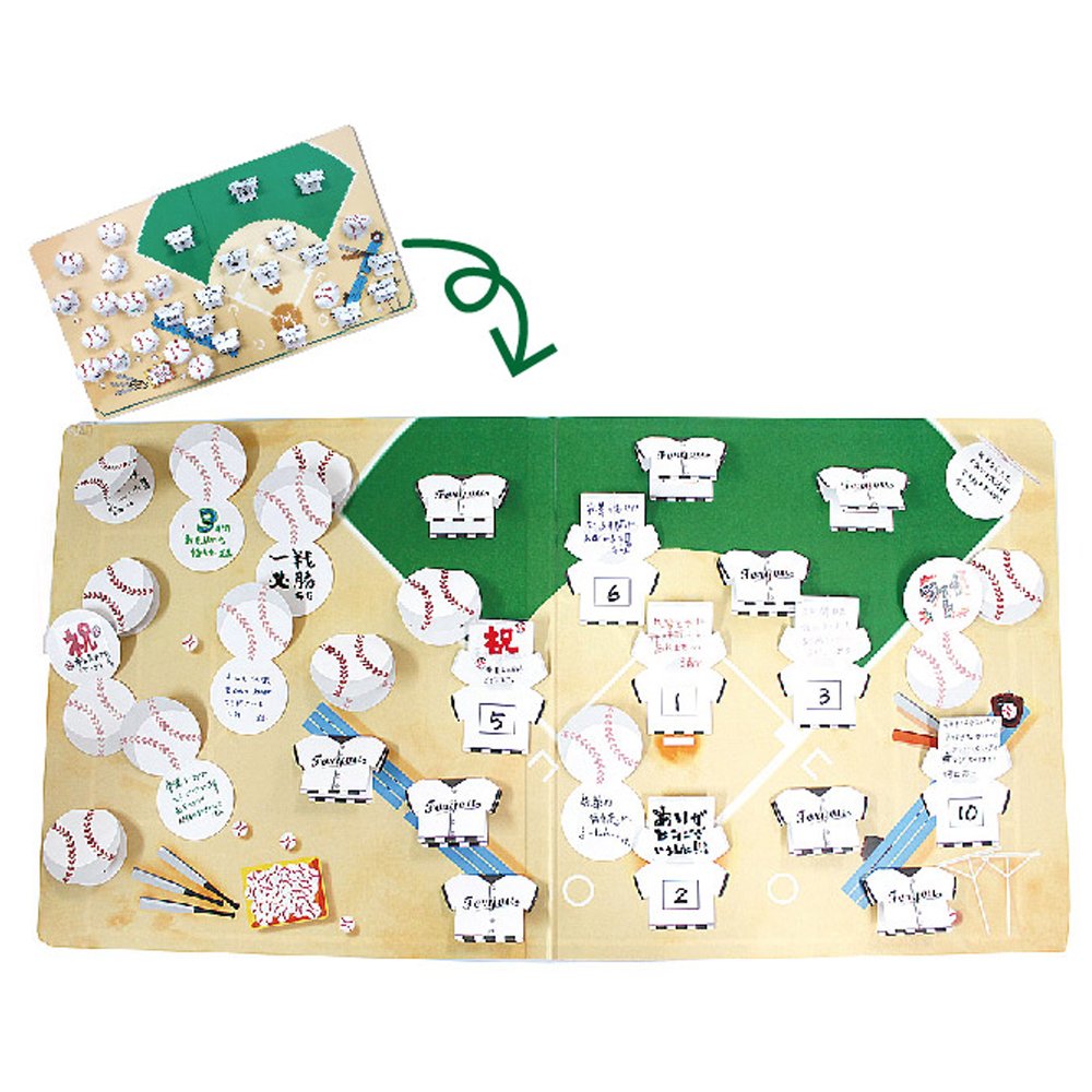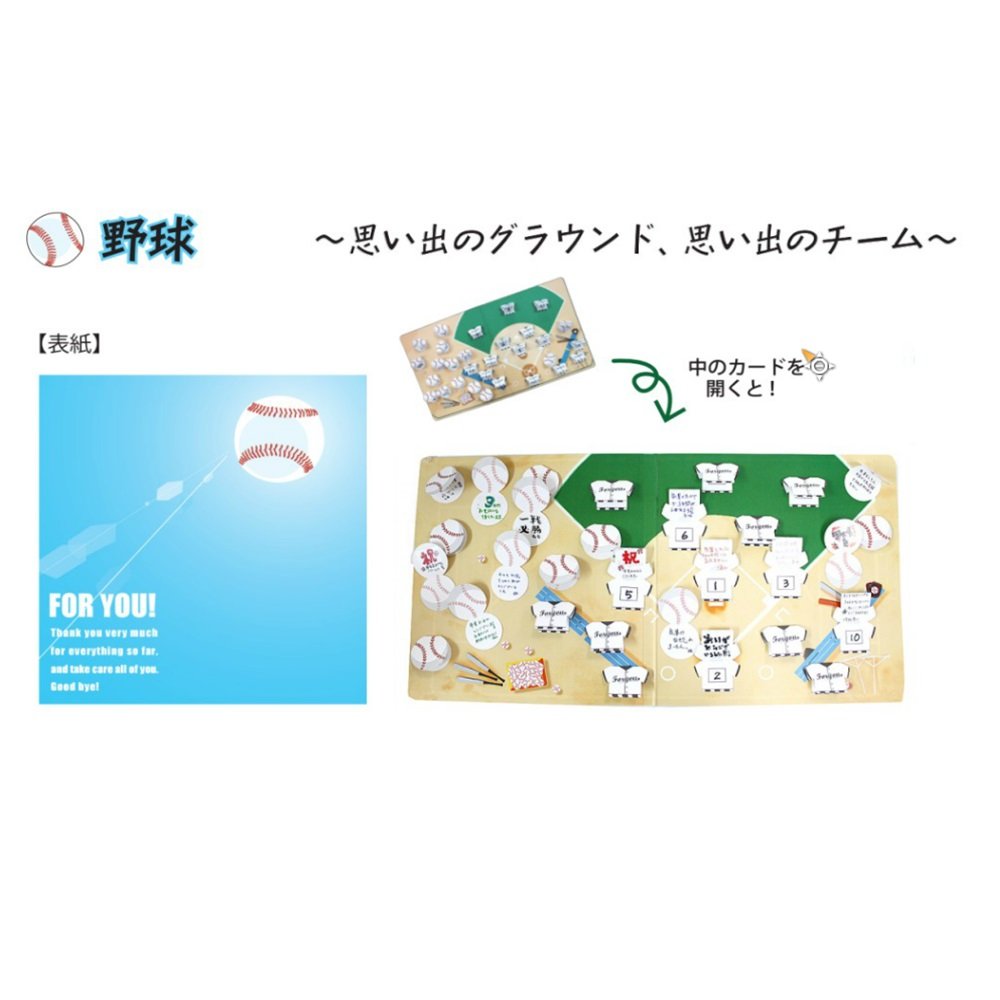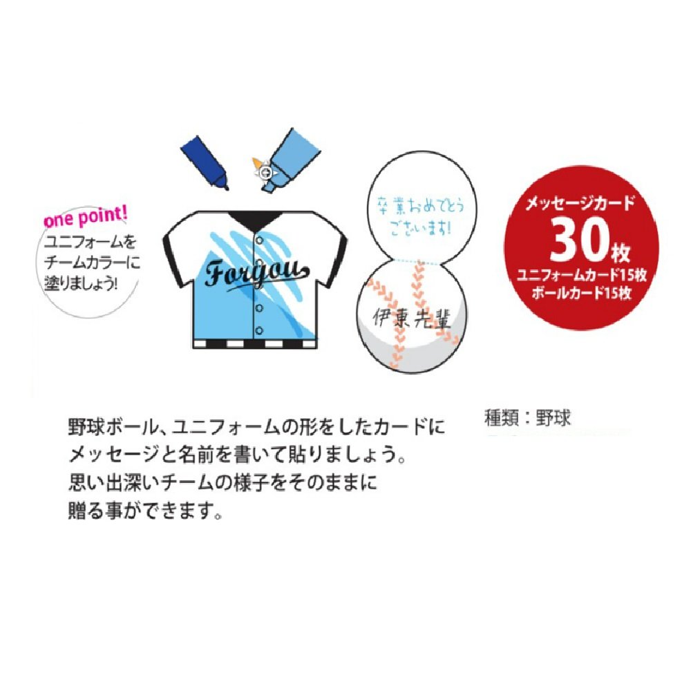A message card in the form of a baseball ball uniform.