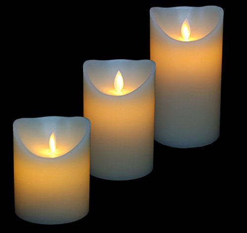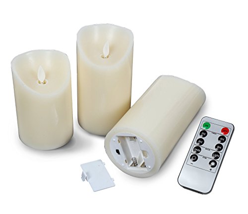 Set of 3 Battery Operated Flickering Flameless 5-Inch, 6-Inch, 7-Inch LED Candles with 10-Key Remote Timer
