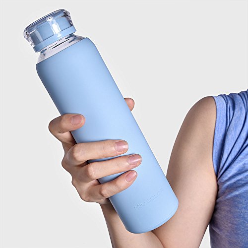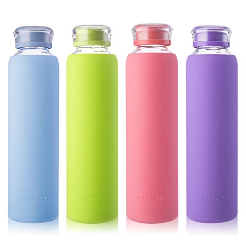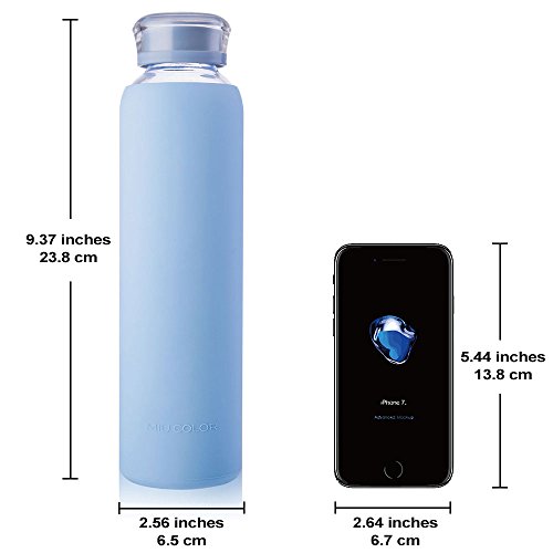 MIU COLOR Glass Water Bottles, for Beverage, Drinking, Juice Bottle, Milk Container, to Go Sports, 16 oz, BPA Free