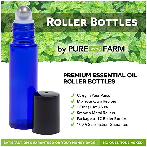 - 12 HIGH QUALITY COBALT BLUE ROLLER BOTTLES: These sleek, custom-crafted cobalt blue glass roll-on bottles are fitted with a stainless steel metal ball that rolls effortlessly. Each bottle comes with a simple screw-on top to ensure an air-tight seal to prevent any leaks. Unlike other roller bottles, this glass is original, genuine, and not painted. Why sacrifice quality when you can have the best?