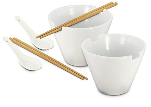 Set Includes: (2) 28-Oz Ceramic Bowls (2) Oriental Spoons (2) Sets Of Bamboo Chopsticks