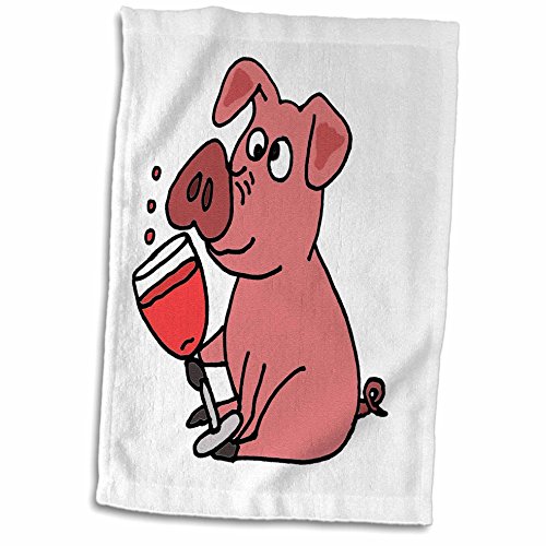 3D Rose Funny Pink Pig Drinking Wine Cartoon Hand Towel, 15" x 22"