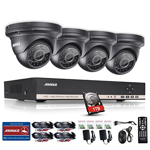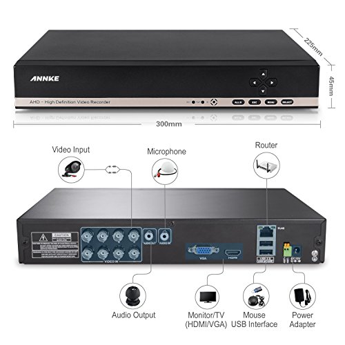 -. Brand : Annke -. Color : Red -. Feature : All-in-One HD System brings you the crisp 1280x720p (1280tvl) resolution: truly realtime feeds with a crisp HD image unequaled by other platforms on the P.R.Ivate consumer market / Updated 720P(1280*720) build-in IR Cut Filter ensures true color under all lighting conditions day or night; DVR Equiped with HDMI/VGA port for multi video output. / QR-Code Scan to remote access in seconds. Remote viewing on your PC and mobile devices. All of our systems are encrypted and run on your network by using DVR as a central hub. Easy and Safe! / Amazed Quick QR Code Scan & P2P -- Easy & Quick Remote Access, No more complicated DDNS and network configuration involved, you can access to the cameras anytime and anywhere in the world / All systems CE & FCC certified with qualified power supplies. Guaranteed for a Full Year & Free life time Tech Support -. Label : ANNKE -. Manufacturer : ANNKE -. Model : D3708G31H1T+C8048VDB kits-140826-us -. MPN : D3708G31H1T+C8048VDB kits-140826-us -. PackageQuantity : 1 -. PartNumber : D3708G31H1T+C8048VDB kits-140826-us -. ProductGroup : Home Improvement -. ProductTypeName : HOME_LIGHTING_ACCESSORY -. Publisher : ANNKE -. Studio : ANNKE -. Title : Annke 8CH HD-AHD 1080N DVR Recorder with 1TB Hard Drive Home Security System and (4) 1.0MP 1280x720 Weatherproof Indoor & Outdoor CCTV Cameras