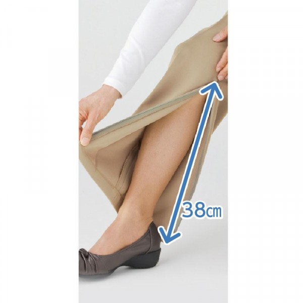診療所などで足を見せる時、裾をまくるのは大変。そんな悩みを解決!面倒だったパンツの着脱をしなくてもスッとファスナーを降ろすだけでOK。湿布やサポーターをするときも便利です。ファスナーは内側に同色であしらっていますので、普段は目立ちません。見た目は通常のパンツなので、おしゃれに軽やかに装ってください。シルエットの美しさも自慢です。 |