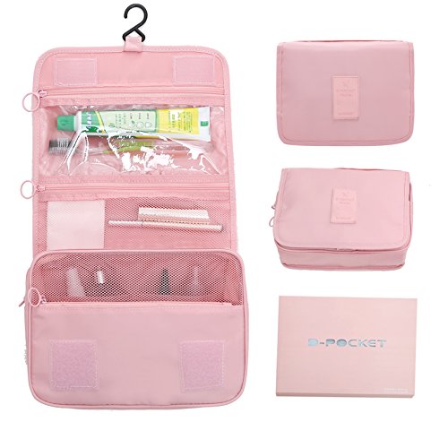 hanging cosmetic travel bag Portable Travel Makeup Cosmetic Bag waterproof travel bag makeup bag Men and women, old and young Christmas gift (pink)