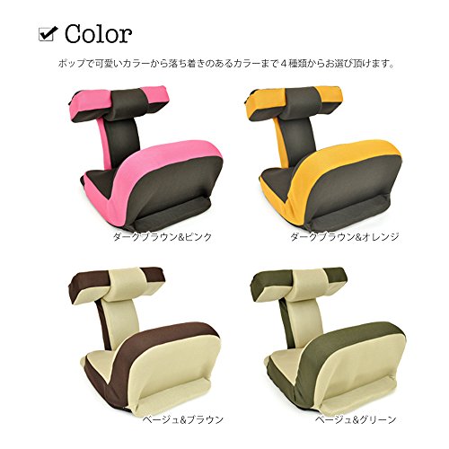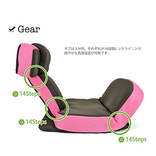 3箇所のリクライニング機能 背もたれ、座面には計3箇所のリクライニングギアを搭載。 それぞれお好みやシーンに合わせて14段階に調整可能!ご自身の最もくつろげる角度を見つけてください♪ | テレビ鑑賞もゲームも楽チン姿勢をキープ 3箇所のリクライニングギアをお好みに合わせて調整するだけで、どちらの向きでも安定した座り心地をご体感できます。 ゲームやスマホいじりの時に一番負担がかかる腕をしっかり支えてくれるから、自然と力が入ってしまう肩もリラックス状態を保つことができ、ゲームを充分に楽しめますね♪ | 4色のカラーバリエーション ダークブラウン×ピンク、ダークブラウン×オレンジ、ベージュ×ブラウン、ベージュ×グリーンの4色をご用意。 通気性の高いハニカムメッシュで、長時間座ってもお尻や背中が蒸れにくく快適です♪ |
