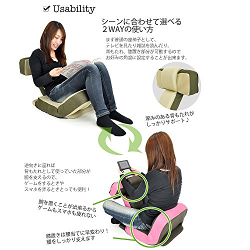 座面部分は腰当てに早変わり。腰をしっかり支えるから安定感ある座り心地を得ることができます。