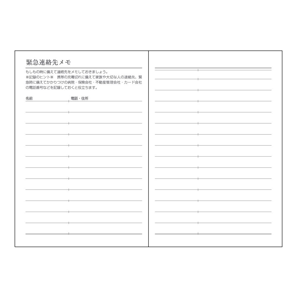 Emergency contact memo / Timetable / Present memo / List of anniversary of life / Chronological chart of age