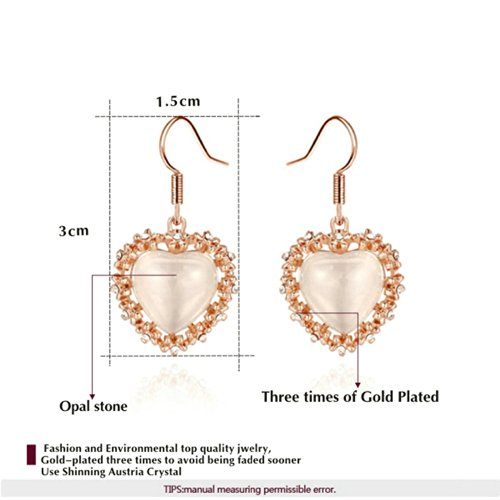 - Title : Yoursfs Fashion 18k Rose Gold Plated Heart Opal Earrings Use Austrian Crystal Hook Wedding Earrings