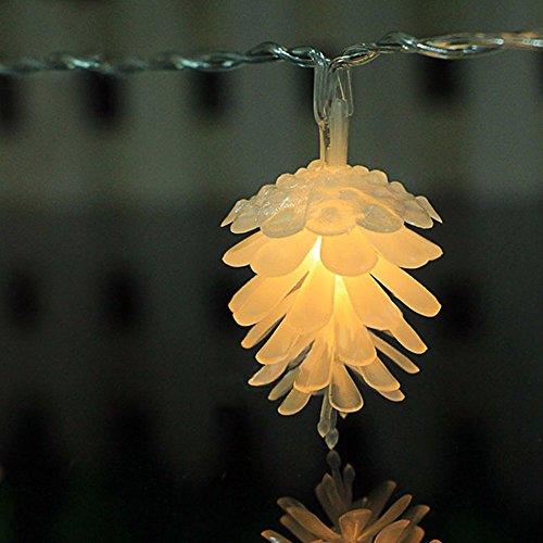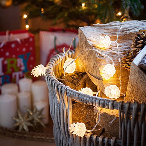 QUALITY LIGHTS: Made of silver plated copper wire, our Pinecone String Lights is safe and never go hot. The discreet clear cable blends easily and there is a handy 0.3m lead to the clear battery box so it can be tucked away from view with ease. When you decorate the Christmas tree with our string lights, the wires will be invisible.