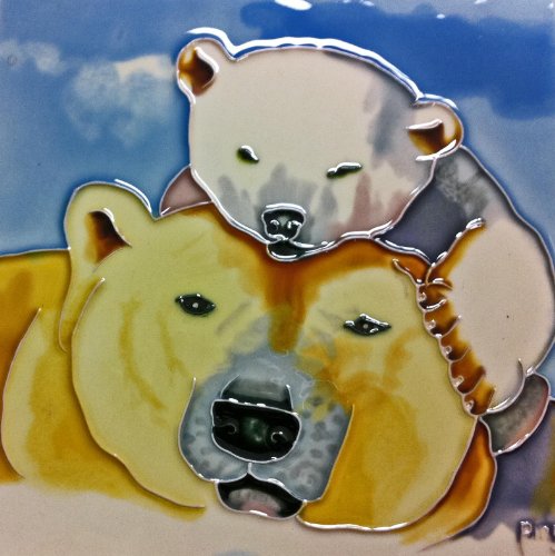 Continental Art Center BD-2052 8 by 8-Inch Mother and Baby Polar Bears Ceramic Art Tile