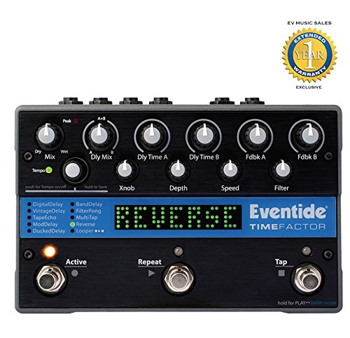 ReleaseDate : 2008-06-16 Studio : Eventide Publisher : Eventide Binding : Electronics Product Description Every guitarists needs delay! But when you plug into the Eventide TimeFactor, you better be ready for HUGE delay possibilities ? unlike anything you've ever jammed around with in the past. This pedal is for the serious delay hound. Someone who wants 10 studio-quality effects, ranging from the digital to the analog to the ethereal. You can use the built-in effects for stereo or mono delayed madness, and the 10 real-time control knobs let you tweak your sound in ways you've never thought possible. Tap tempo is there, of course. And you can even use an expression pedal to morph your sound or get creative with MIDI to launch into an unlimited array of presets. 0