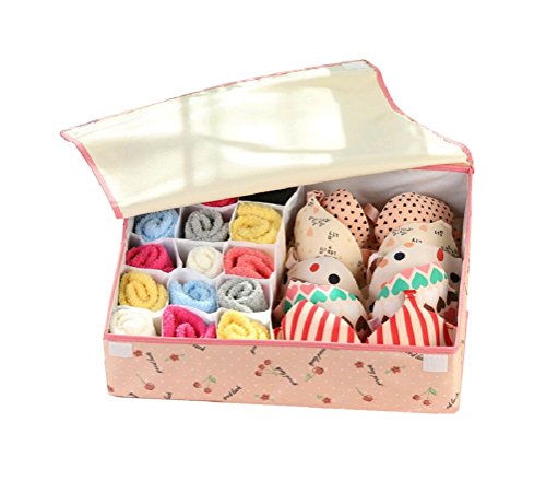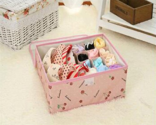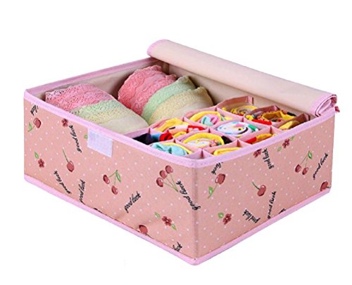 NAGU Foldable Fabric Storage Box for Underwear,Clothes Storage Bag Basket Bins Organizer Containers Divider for Quilt Apparel Garments Bras Socks Ties Scarves Pink