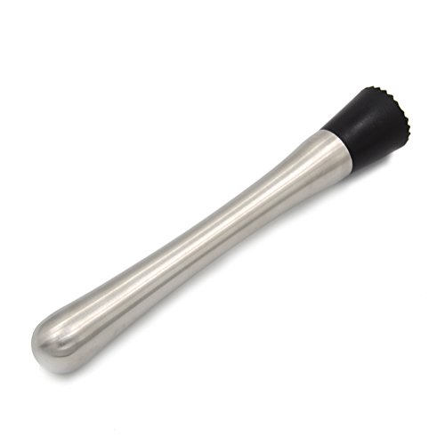 -. Feature : The cocktail muddler is made of stainless steel which will remain beautiful and never add unwanted tastes to your drinks / Cocktail Muddler Length:about 20.5cm/8inch. Package included: 1 x Cocktail Muddler / The muddler is essential for thoroughly blending the flavors of herbs,spices and fruits used in many popular cocktails / Grooved nylon head of muddle for thorough mashing of herbs,fruits and spices to help you create a most unique,and flavorful blend / Perfect for muddling herbs,spices,fruits and bitter sugar cubes.Create perfect cocktails like the mojito,mint julep,old fashioned and capipiroska with the perfect muddler