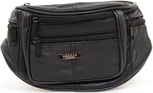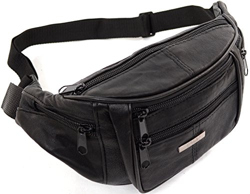 -. Title : Unisex Soft Nappa Leather Waist Bag / Money Belt / Fanny Pack, Multiple Pockets