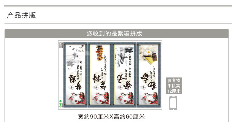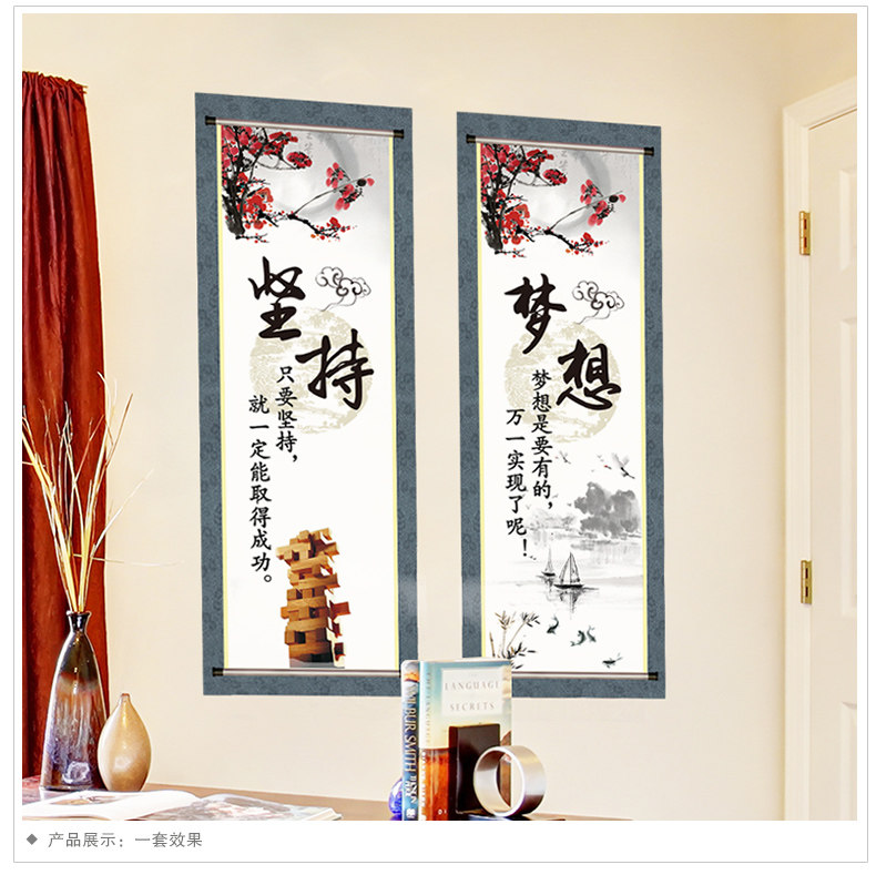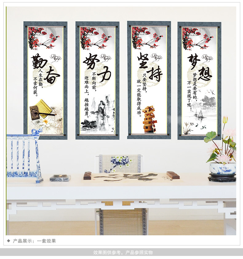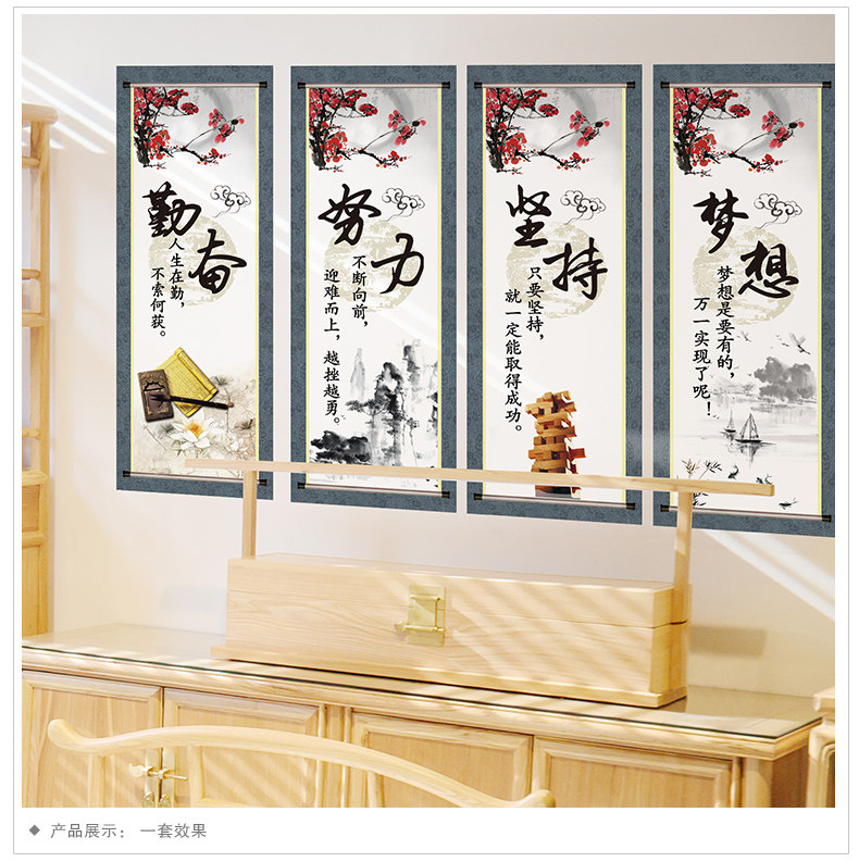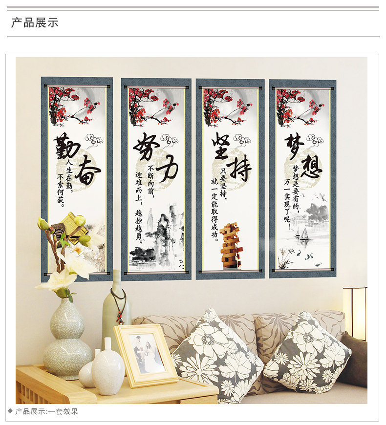 中式挂画励志墙贴纸贴画客厅背景墙装饰公司办公室布置字画四联画