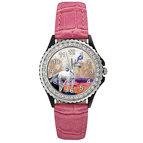 -. Title : Unicorn Crystal Rhinestone Pink Leather Wrist Watch