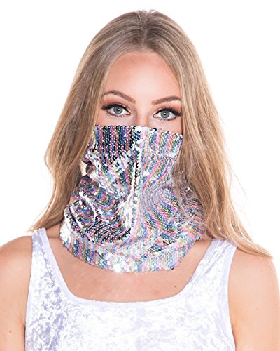 - GLAM AND SHINE - Let yourself shine in this ultra sparkly face bandana! You'll surely steal the show in this flashy Sequins Mask Bandana. These high-quality sequin bandanas are built to last!