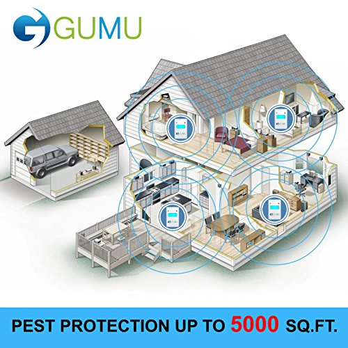 - ✅LARGE COVERAGE AREA : Set of 4 GUMU Pest Repellents gives you up to 5000 sq.ft of indoor control. Wherever you use it: at your home, restaurant, hospital, hotel, warehouse, shop, grain depot, the ultrasonic pest repellers will protect them. Large areas may require additional units.