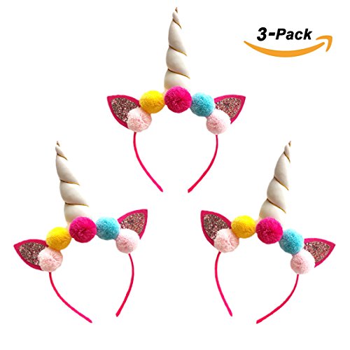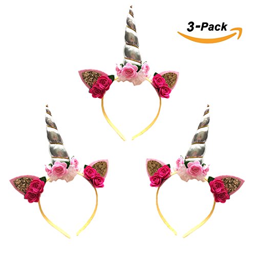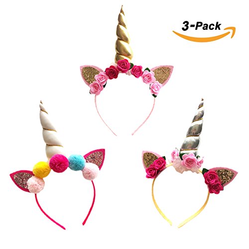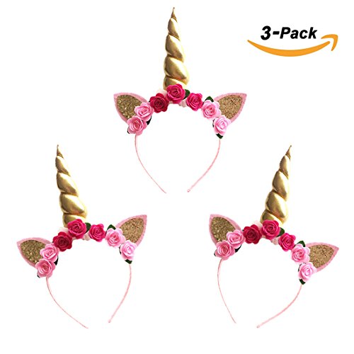-. Title : NinkyNonk 3 Pack Kids Unicorn Headband Rose Flowers Birthday Party Headbands, Ears Unicorn Horn Head Hoops for Party Decoration Cosplay Costume