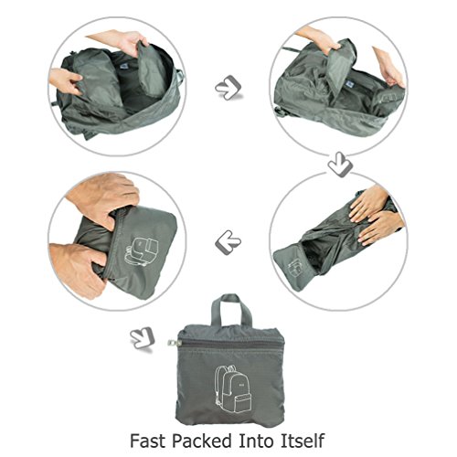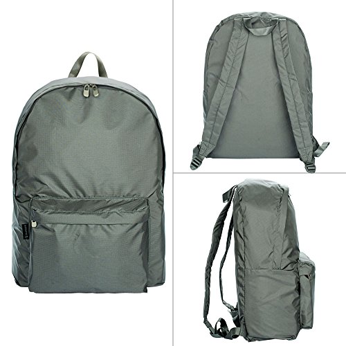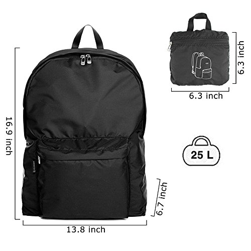 -. Feature : Multipurpose - Lightweight. Durable. Compact. This packable backpack is perfect for day to day use or day-trips, travel, camping, hiking, vacation, school and shopping. Simple and stylish, it is a great gift for everyone / Durable - The foldable backpack is made of High Quality Water and Tear Resistant nylon fabric with 2-way Abrasion Resistant Metal zipper closure for long-lasting performance / Convenient - The hiking daypack is a great space saver, it can folds into its inner zipper pocket and converts to a handy pouch / Roomy (25 L) and Lightweight (0.6 pounds) - Dimensions: 16.9 x 13.8 x 6.7 inch, this daypack has 3 zippered compartments, 1 large main compartment to carries your gadgets and personal stuffs, 1 front pocket to hold small accessories and 1 inner security pocket for valuable items / Airport Hero - To avoid overweight charges, simply unfold from your lage and use it as a carry on for your excess baggage