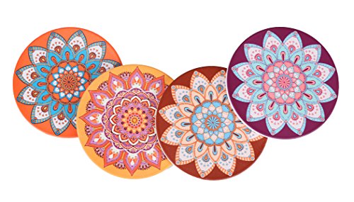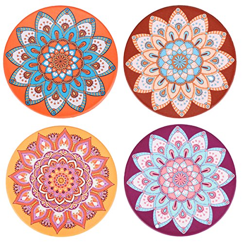 Jwellking Absorbent Stone Ceramic Coasters Set for Drinks,Bohemian,Set of 4