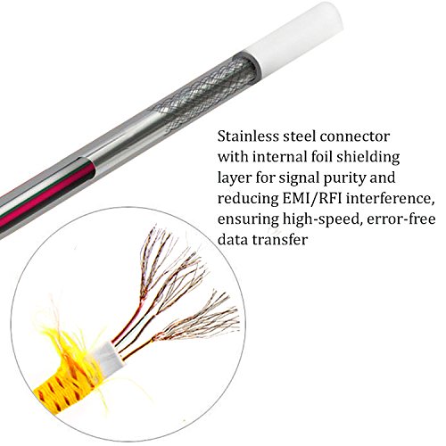 Fast: Stainless steel connector with internal foil shielding layer for signal purity and reducing EMI/RFI interference, ensuring high-speed, error-free data transfer