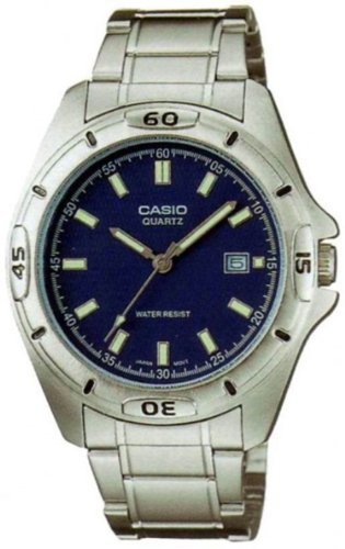 -. Title : Casio Men's MTP1244D-2A Silver Stainless-Steel Quartz Watch with Blue Dial