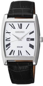 세이코import Seiko Solar White Dial Stainless Steel Black Leather Mens Watch SUT891【병행수입】