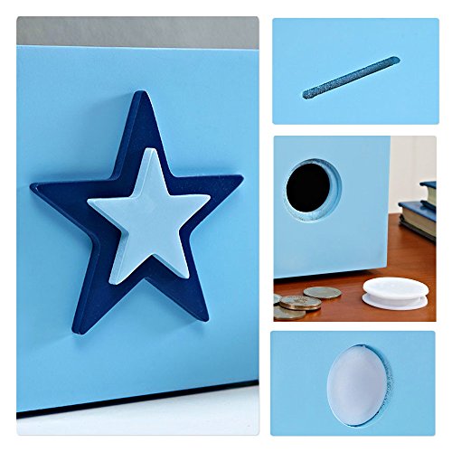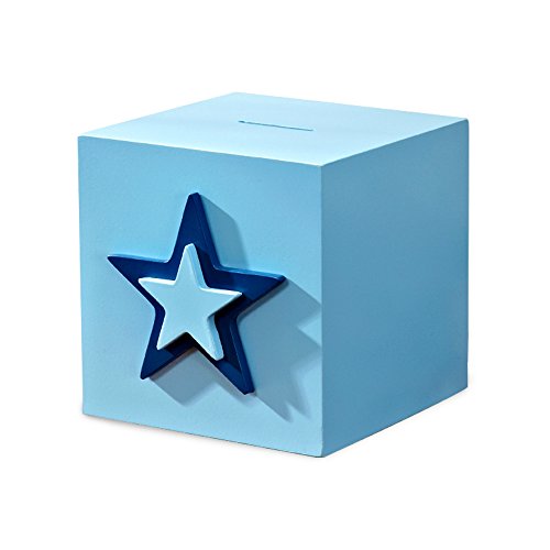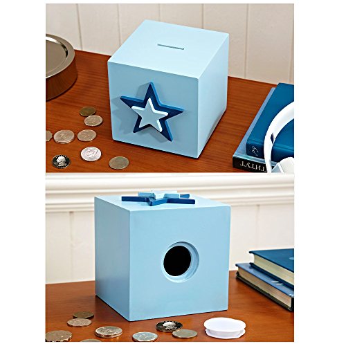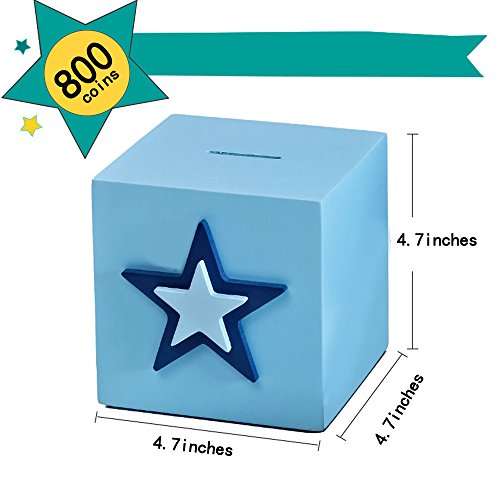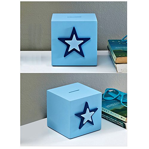 Studio : Shantou Jinxin Trading co.,Ltd Publisher : Shantou Jinxin Trading co.,Ltd Binding : Toy Product Description Feature When kids have his own cute piggy bank , kids will save and take care of his/ her money in a fun way , kids will add coins and hide the piggy bank in a secret?corner and take the money out and count it for the plan to buy something they want . If you teach children at a young age to save money for the things they really want , teaches them to be wise with money and it helps them in the long run and some day when he understands a little bit more about money , you can show him the value of saving . Specification : Color: Blue Material: plant fibre board Product Dimension:4.7 x 4.7 x 4.7 inches Weight : 1 pounds Package: Paper box with bubble film inside Package Includes : 1 X star piggy Bank Notice : 1 , If surface of piggy bank is dirty, wipe clean with damp cloth 2 , Please sealed the rubber stopper holds at bottom when store and pull the rubber stopper out softly when take out coin the coin . 3 , When you accidentally push the rubber stopper into piggy bank , you can pull the rubber stopper little harder and easy take out due to the stopper is very flexible .