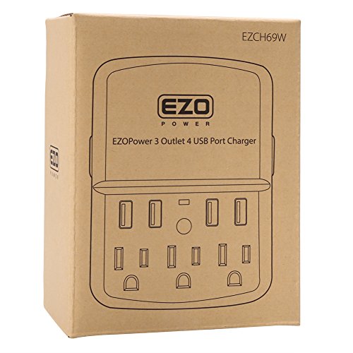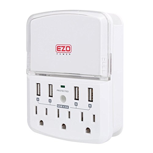The EZOPower 3-Outlet Wall Mount Surge Protector is ideal for home and office use. With 540-joule energy rating, the surge protector lets you power and charge up to 5 electrical devices with 3 AC outlets and 4 USB charging ports. The USB ports allow you to charge your smartphone, tablet, MP3 player and other devices powered via USB, and make it easy to keep your devices running without blocking your computer's USB ports or the AC outlets you need for larger devices. The Surge Protector also includes optional socket screw to secure the unit to the wall, turning any outlet into a convenient charging station for your office, media room or kitchen.