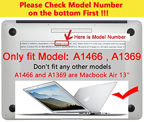Friendly Note:The case only fit for Macbook Air 13 Inch Model: A1369 & A1466. Please find the Macbook's model number at the bottom to determine compatibility (Like the second picture shown). If you buy a wrong model,please keep package original and apply for return.