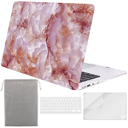 Sykiila Macbook Air 13 Case Hard Cover 4 in 1 + Screen Protector Film + TPU Keyboard Cover+ Sleeve Cover Protective Folio Case for Macbook Air 13 Inch Model: A1369 & A1466 - Pink Marble