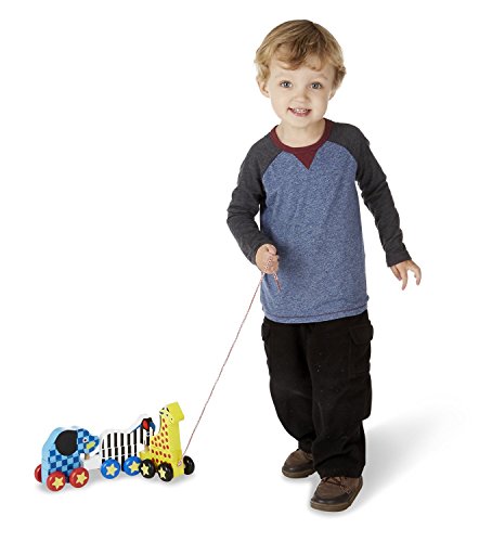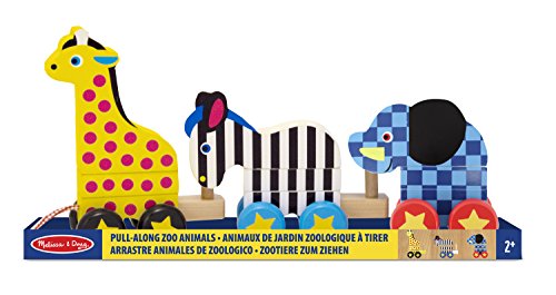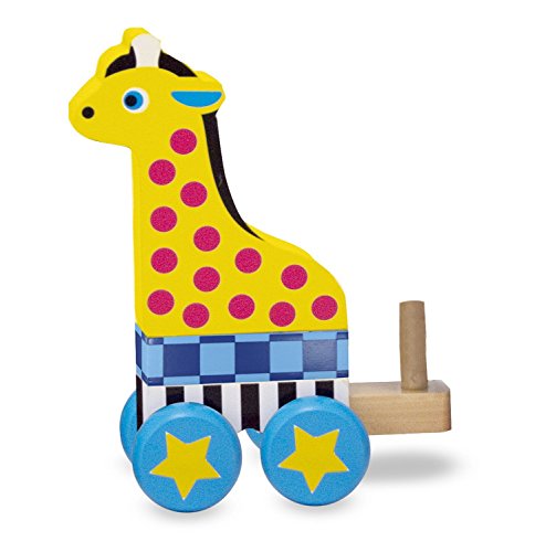 A giraffe, elephant and zebra, can easily become a ze-phant, an ele-raffe or a gir-bra when the wooden pieces are rearranged to form creative new critters! This popular wooden pull-toy features three interlocking mix-and-match animals on wheels.Feature