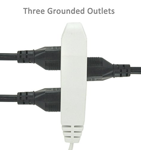 BindMaster 15 Feet Extension Cord / Wire, 3 Prong Grounded, 3 outlets, Flat Plug , White