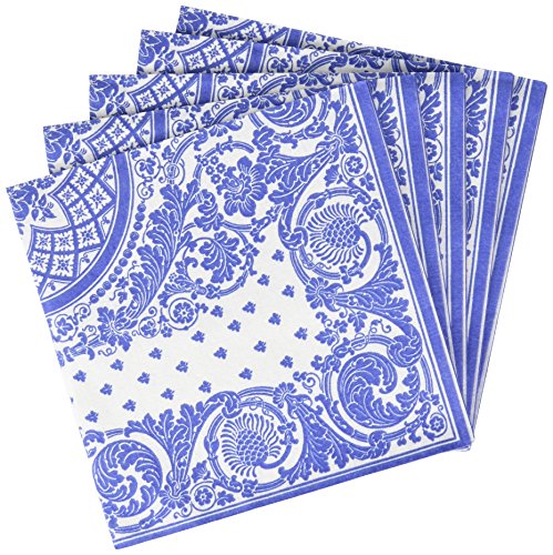 - Entertaining with Caspari 12270LG Jacquard Linen Blue and White-Paper Linen Napkin Luncheon-Pack Of 15