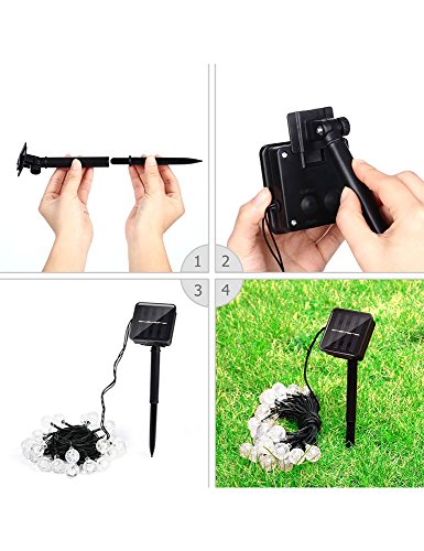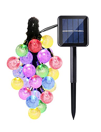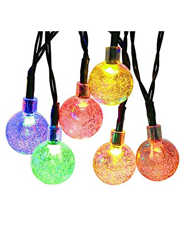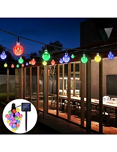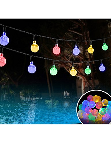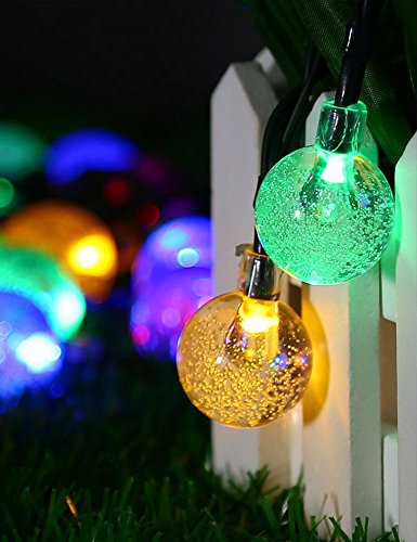 - Outdoor Party Lights String - All the bubble crystal balls are colorless and transparent, but plus the beautiful color lights and different flashing modes, this garden solar lights will light up your house, garden, patio, yard, corridor, party stage, Christmas tree and so on. It will be the best atmosphere lights for indoor/outdoor decoration.