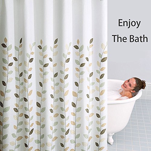 Selaurel Heavy Duty Shower Curtain Liner Waterproof Mildew-free Bath Curtain Polyester Fabric Bathroom Decoration Print Shower Curtain with 12 Shower Hooks (Lucky Leaves)