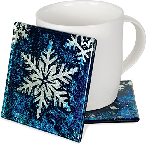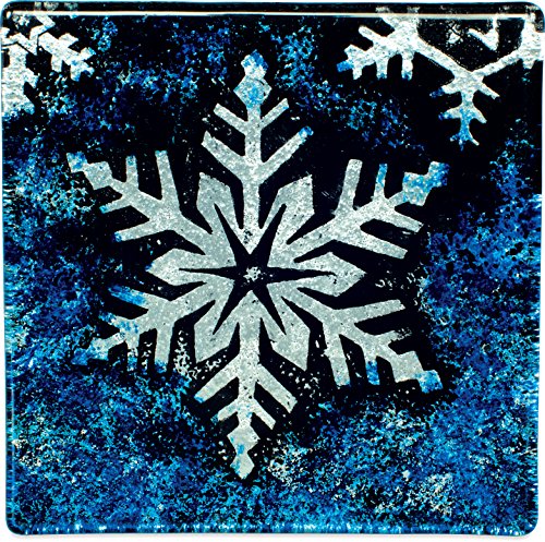 Angelstar 19434 Blue Snowflake Glass Coaster Set of 4, 4", Multicolor