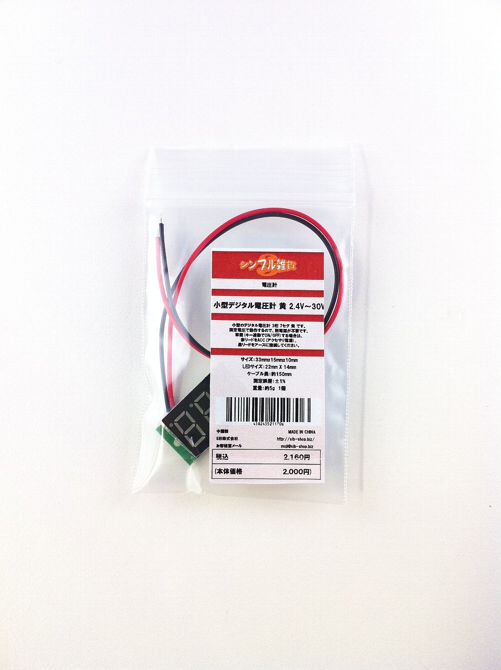 [Simple miscellaneous goods] compact digital voltmeter 2.4V ~ 30V Yellow (2-wire = separate power supply unnecessary / implantable) voltage measurement [domestic quality management] yellow