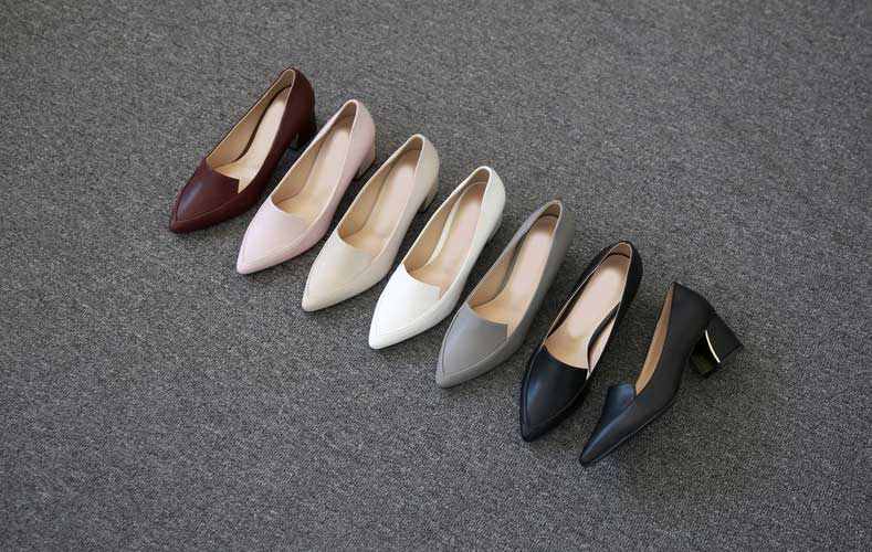 Basic stiletto middle heel 5cm bend looper spike shoelaces pumps domestic production _ gold line bend