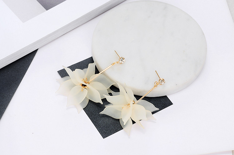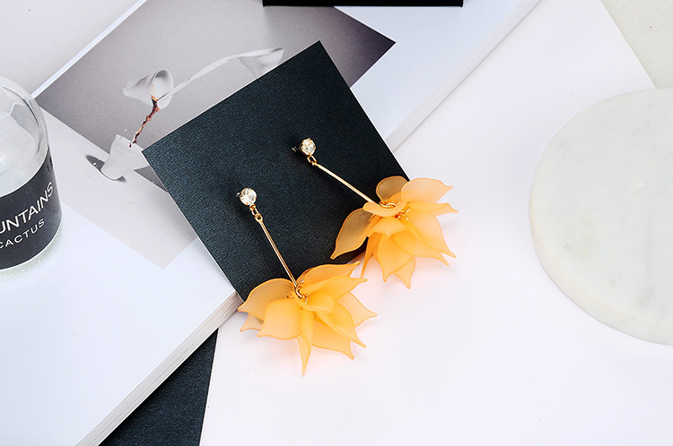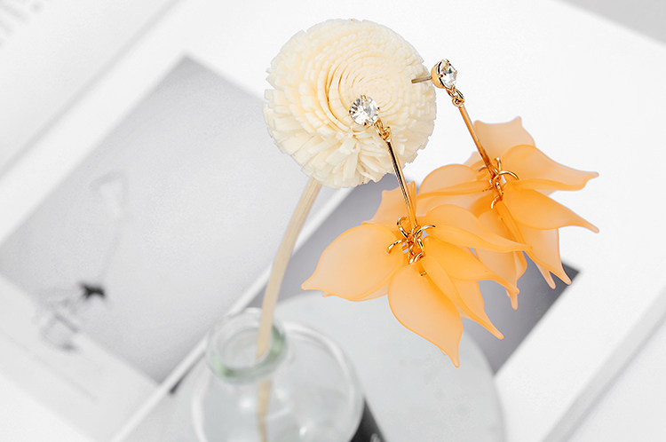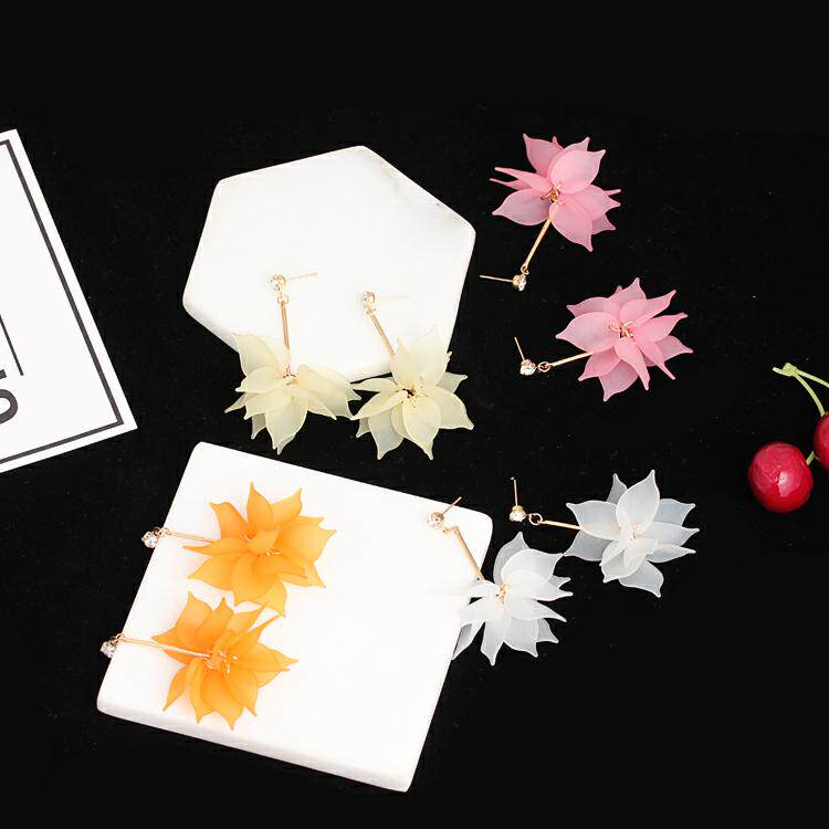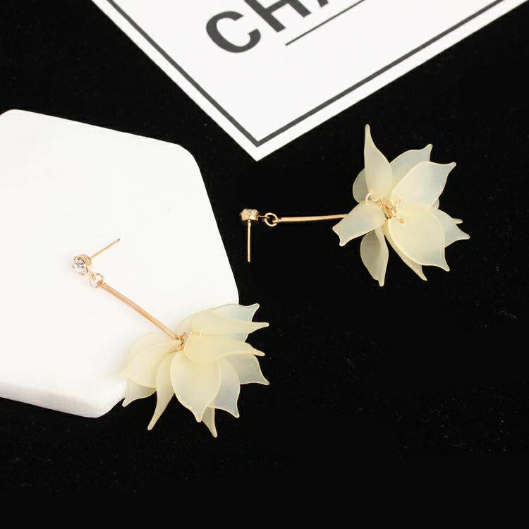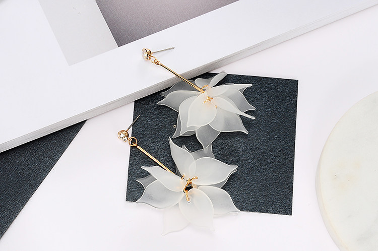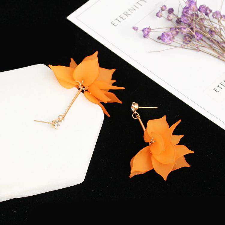 Material: high quality alloy + high quality acrylicEarrings about: 6.5cm, flower size about: 3 * 3.5cm, petal size about: 2 * 1.3cm manual measurement, the error will be around 0.1-0.2 Oh