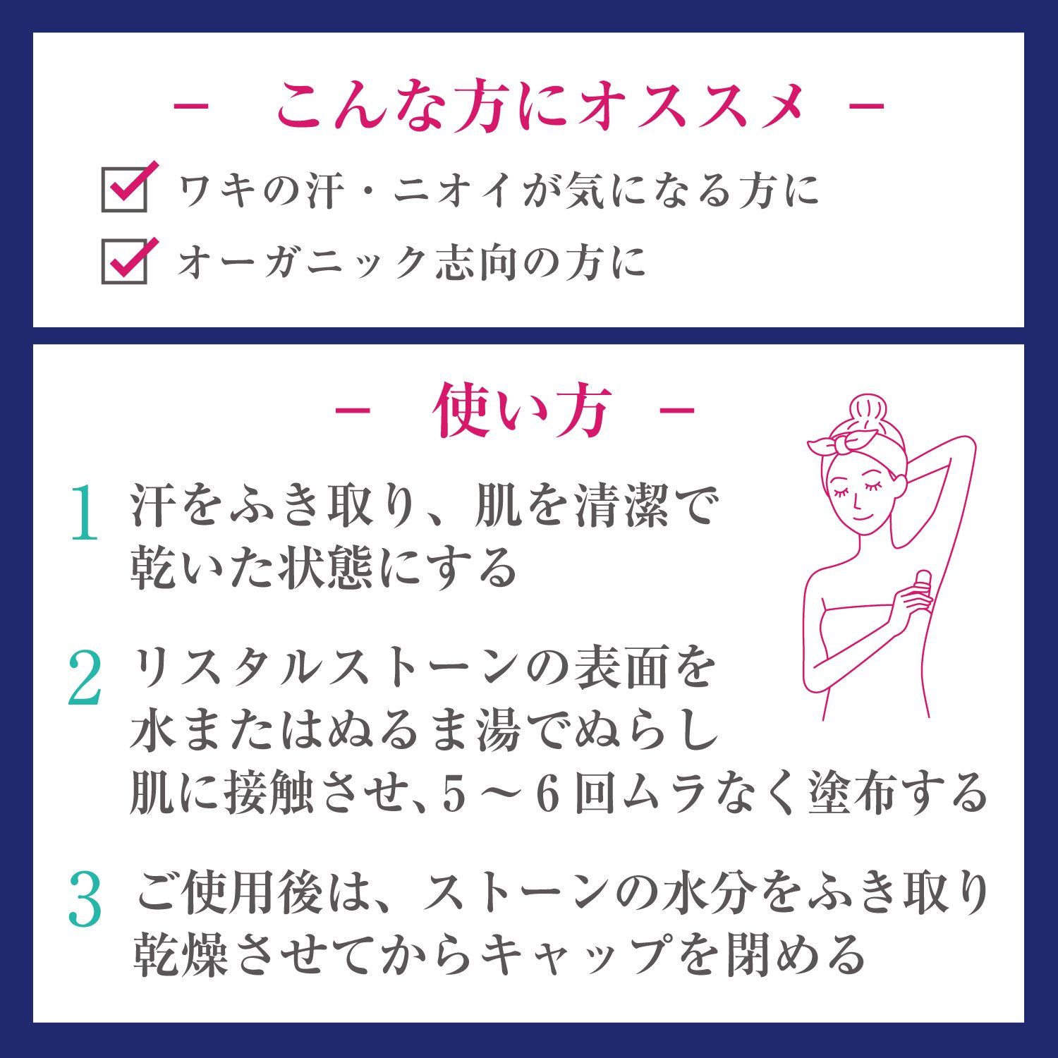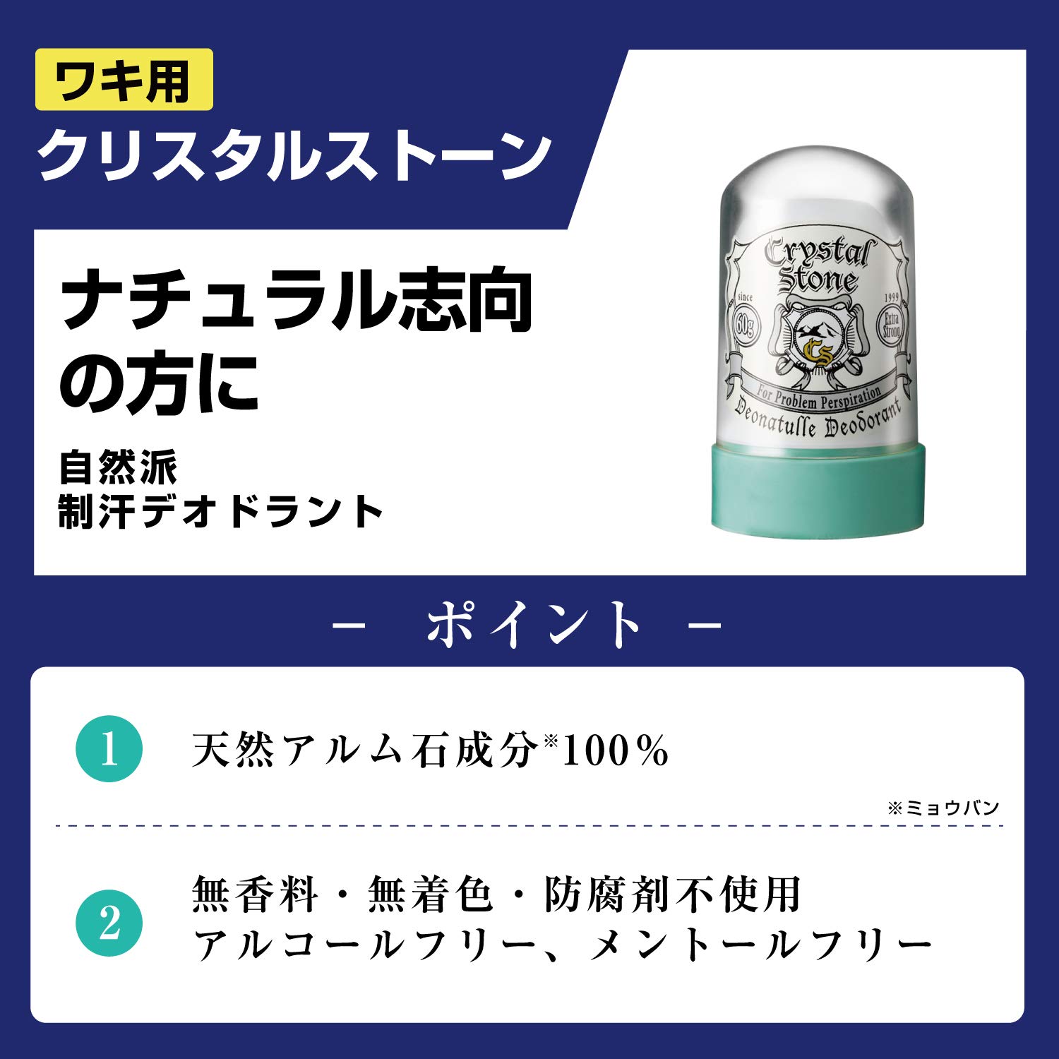 デオナチュレは天然デオドラント成分“アルム石"の力で汗とニオイをカバーする制汗剤です。