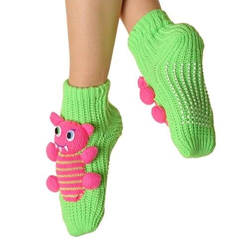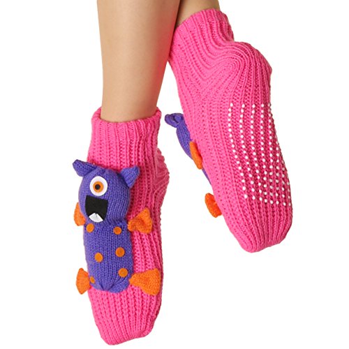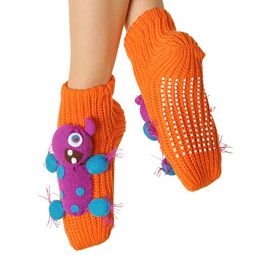 Angelina 3D Animal Winter Knit Socks with Non-skid Bottom are voted the cutest winter socks by many retailers. The adorable stuffed animals are securely sewn on to the sock so they won't fall off easily. These socks will bring not only great warmth to your feet, but also a huge smile to lighten up your heart. Comes with non-skid bottoms to prevent slipping and sliding. Available in Lady's One Size, fits US shoe size 6-9. Makes perfect presents for yourself and your loved ones.Feature