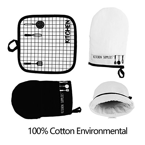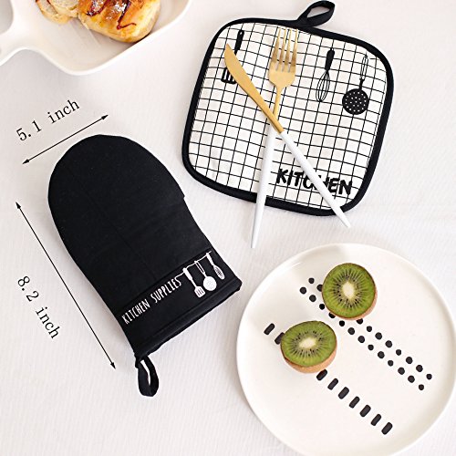 Oven Mitts Heat Resistant 100% Cotton Oven Gloves Non-Slip for Cooking, Baking, Barbecue Potholder 1 Pair with Pot Holder