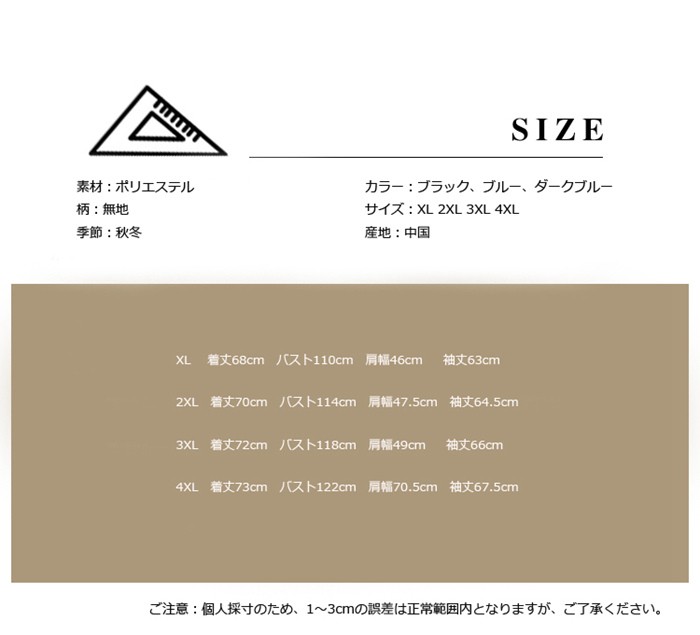 ジャケット メンズ 中綿ジャケット ダウンコート ショート丈 ダウンジャケット メンズ 無地 大きいサイズ カジュアル アウター 2018秋冬新作 中綿ジャケット メンズ ジャケット ダウンコート ショート丈商品詳細素材:ポリエステル柄:無地季節:秋冬カラー:ブラック、ブルー、ダークブルーサイズ:XL 2XL 3XL 4XL産地:中国サイズ参照表XL 着丈68cm バスト110cm 肩幅46cm 袖丈63cm2XL 着丈70cm バスト114cm 肩幅47.5cm 袖丈64.5cm3XL 着丈72cm バスト118cm 肩幅49cm 袖丈66cm4XL 着丈73cm バスト122cm 肩幅70.5cm 袖丈67.5cmご注意:個人採寸のため、1~3cmの誤差は正常範囲内となりますが、ご了承くださジャケット メンズ 中綿ジャケット ダウンコート ショート丈 ダウンジャケット メンズ 無地 大きいサイズ カジュアル アウター 2018秋冬新作 中綿ジャケット メンズ ジャケット ダウンコート ショート丈