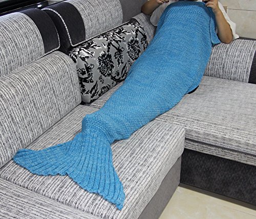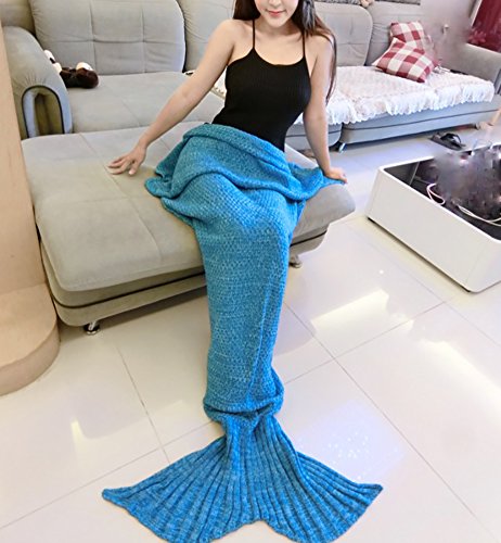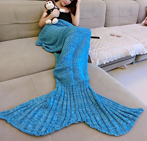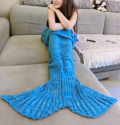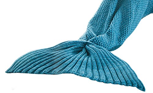 Title : Moxeay Knitted Mermaid Tail Blanket Handmade Living Room Sleeping Blanket (Adults 70.86 x 31.49", Blue)