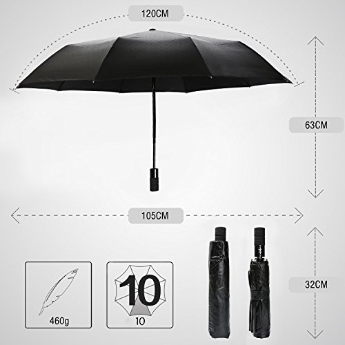-. Title : AUOPLUS Compact Travel Umbrella Windproof Large Reinforced Canopy Automatic Folding with 10 Ribs, UV Protection, Auto Open Close